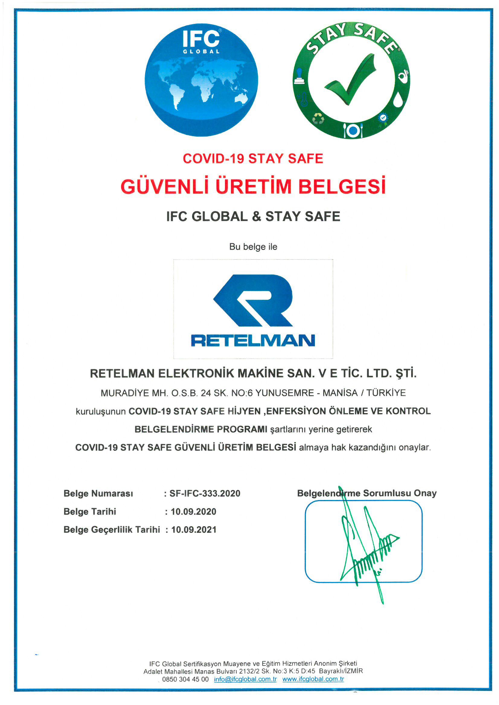 Covid 19 Güvenli Üretim Belgesi